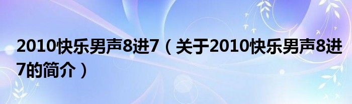 大家好,2010快樂男聲8進7,關于2010快樂男聲8進7的簡介很多人還不知道,現在讓我們一起來看看吧!