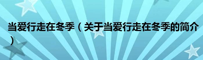 大家好,當愛行走在冬季,關于當愛行走在冬季的簡介很多人還不知道,現在讓我們一起來看看吧!