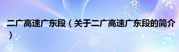 本文關于二廣高速廣東段的簡介就講解完畢,希望對大家有所幫助。