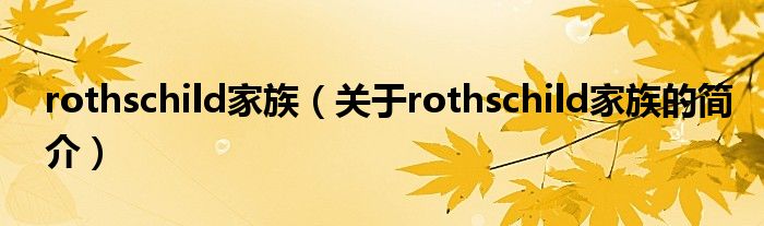 本文關于rothschild家族的簡介就講解完畢,希望對大家有所幫助。