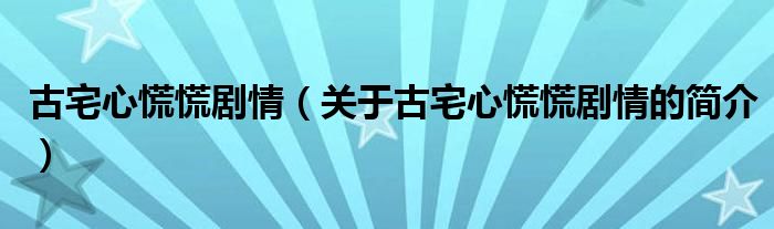 本文關于古宅心慌慌劇情的簡介就講解完畢,希望對大家有所幫助。