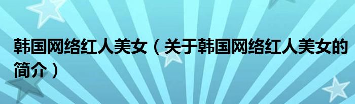 本文關(guān)于韓國網(wǎng)絡(luò)紅人美女的簡介就講解完畢,希望對大家有所幫助。