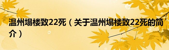 本文關于溫州塌樓致22死的簡介就講解完畢,希望對大家有所幫助。