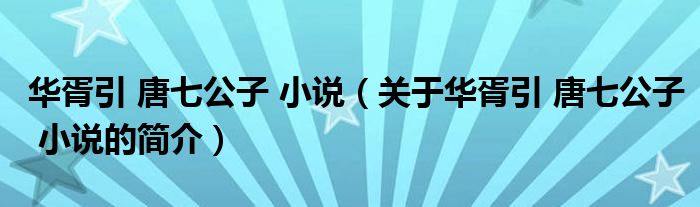 本文關(guān)于華胥引 唐七公子 小說的簡介就講解完畢,希望對大家有所幫助。