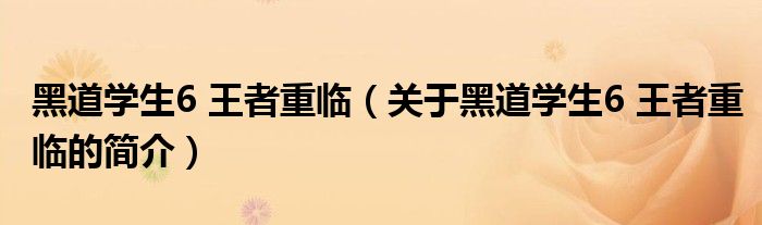 本文關于黑道學生6 王者重臨的簡介就講解完畢,希望對大家有所幫助。