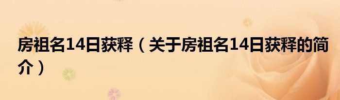 大家好,房祖名14日獲釋,關于房祖名14日獲釋的簡介很多人還不知道,現在讓我們一起來看看吧!
