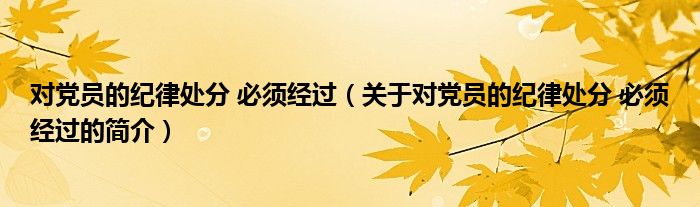 本文關于對黨員的紀律處分 必須經過的簡介就講解完畢,希望對大家有所幫助。