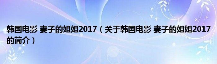 本文關(guān)于韓國電影 妻子的姐姐2017的簡介就講解完畢,希望對(duì)大家有所幫助。