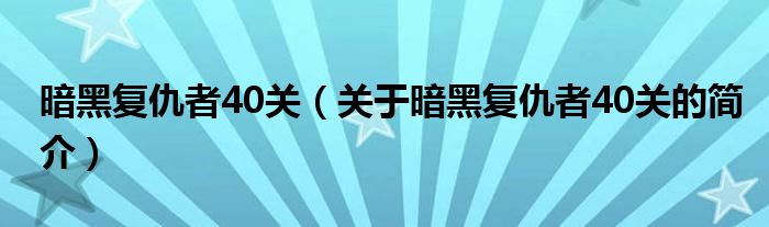 本文關于暗黑復仇者40關的簡介就講解完畢,希望對大家有所幫助。