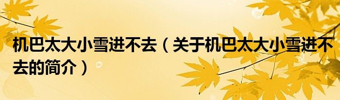 本文關(guān)于機(jī)巴太大小雪進(jìn)不去的簡(jiǎn)介就講解完畢,希望對(duì)大家有所幫助。