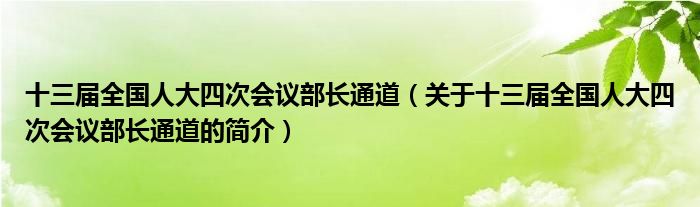 本文關于十三屆全國人大四次會議部長通道的簡介就講解完畢,希望對大家有所幫助。