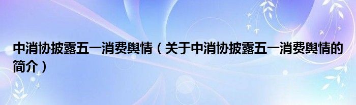 本文關(guān)于中消協(xié)披露五一消費(fèi)輿情的簡介就講解完畢,希望對大家有所幫助。