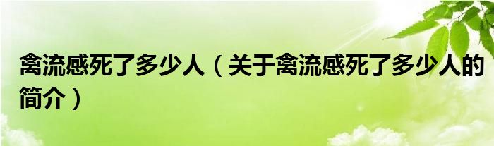 本文關(guān)于禽流感死了多少人的簡介就講解完畢,希望對大家有所幫助。