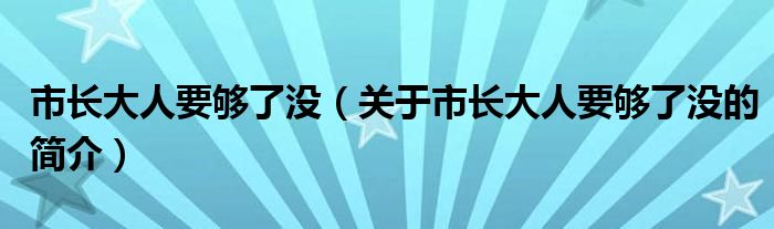 本文關于市長大人要夠了沒的簡介就講解完畢,希望對大家有所幫助。