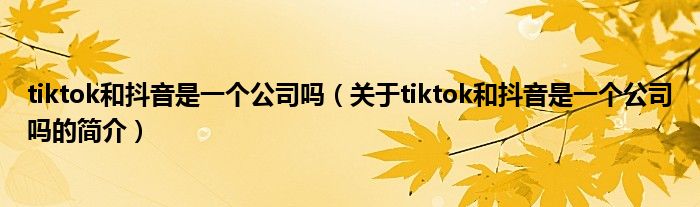 本文關于tiktok和抖音是一個公司嗎的簡介就講解完畢,希望對大家有所幫助。
