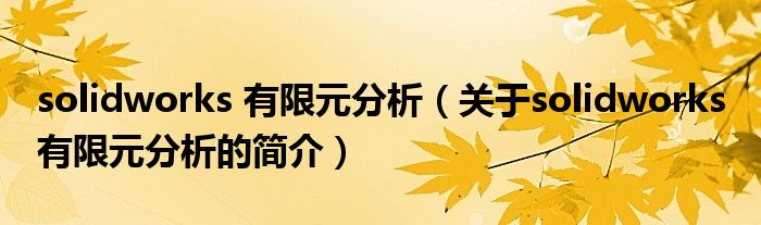 本文關于solidworks 有限元分析的簡介就講解完畢,希望對大家有所幫助。