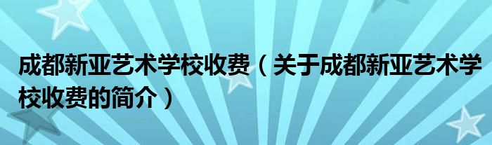 本文關于成都新亞藝術學校收費的簡介就講解完畢,希望對大家有所幫助。