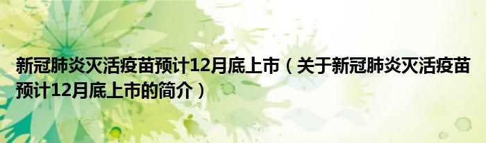 本文關于新冠肺炎滅活疫苗預計12月底上市的簡介就講解完畢,希望對大家有所幫助。