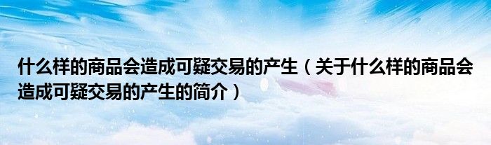 大家好,什么樣的商品會造成可疑交易的產生,關于什么樣的商品會造成可疑交易的產生的簡介很多人還不知道,現在讓我們一起來看看吧!