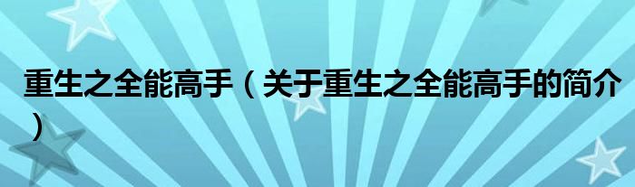 本文關(guān)于重生之全能高手的簡(jiǎn)介就講解完畢,希望對(duì)大家有所幫助。