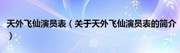 本文關(guān)于天外飛仙演員表的簡介就講解完畢,希望對大家有所幫助。