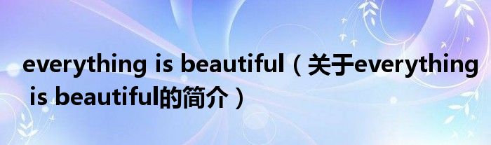 大家好,everything is beautiful,關于everything is beautiful的簡介很多人還不知道,現在讓我們一起來看看吧!