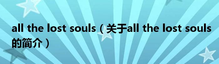 本文關于all the lost souls的簡介就講解完畢,希望對大家有所幫助。