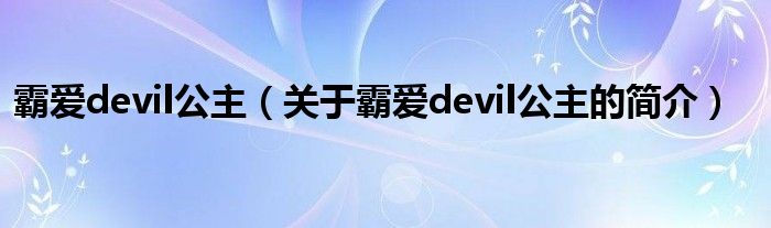 大家好,霸愛devil公主,關于霸愛devil公主的簡介很多人還不知道,現在讓我們一起來看看吧!