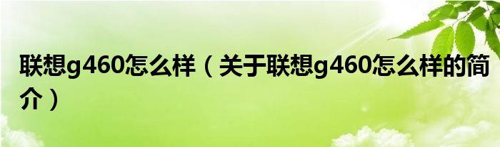 本文關(guān)于聯(lián)想g460怎么樣的簡(jiǎn)介就講解完畢,希望對(duì)大家有所幫助。