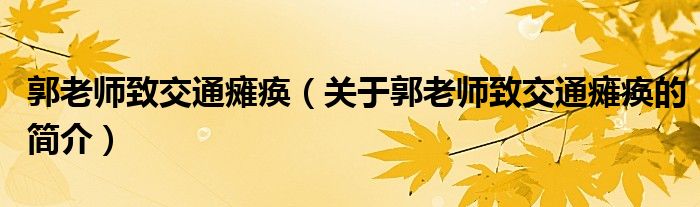 大家好,郭老師致交通癱瘓,關于郭老師致交通癱瘓的簡介很多人還不知道,現在讓我們一起來看看吧!