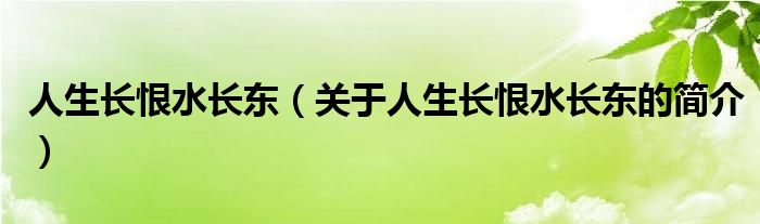 本文關于人生長恨水長東的簡介就講解完畢,希望對大家有所幫助。