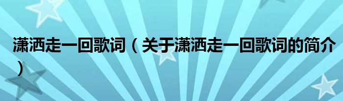 本文關于瀟灑走一回歌詞的簡介就講解完畢,希望對大家有所幫助。