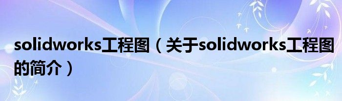 本文關于solidworks工程圖的簡介就講解完畢,希望對大家有所幫助。