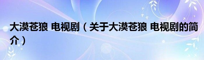 本文關于大漠蒼狼 電視劇的簡介就講解完畢,希望對大家有所幫助。