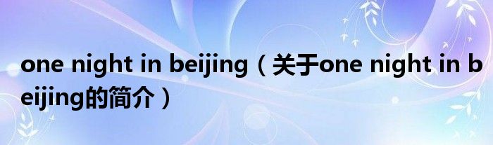 本文關于one night in beijing的簡介就講解完畢,希望對大家有所幫助。