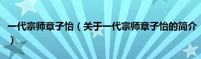 本文關(guān)于一代宗師章子怡的簡(jiǎn)介就講解完畢,希望對(duì)大家有所幫助。