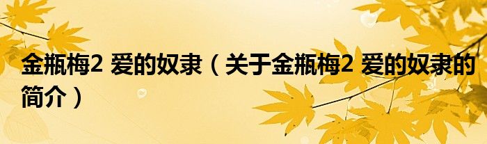 本文關于金瓶梅2 愛的奴隸的簡介就講解完畢,希望對大家有所幫助。