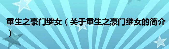 本文關(guān)于重生之豪門繼女的簡介就講解完畢,希望對大家有所幫助。