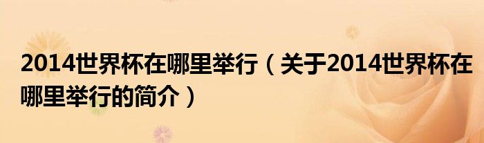 本文關于2014世界杯在哪里舉行的簡介就講解完畢,希望對大家有所幫助。