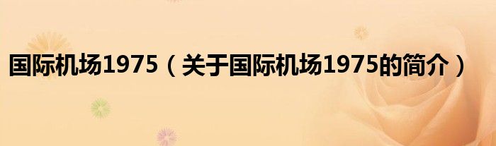 大家好,國際機場1975,關于國際機場1975的簡介很多人還不知道,現在讓我們一起來看看吧!