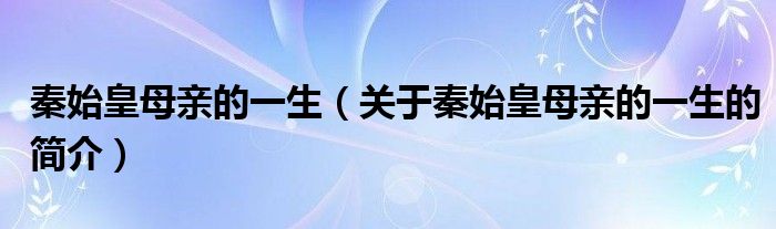 大家好,秦始皇母親的一生,關于秦始皇母親的一生的簡介很多人還不知道,現在讓我們一起來看看吧!