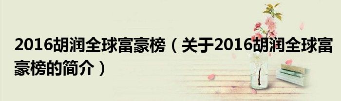 大家好,2016胡潤全球富豪榜,關于2016胡潤全球富豪榜的簡介很多人還不知道,現在讓我們一起來看看吧!