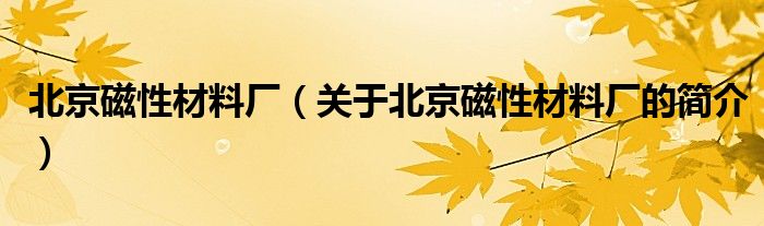 本文關(guān)于北京磁性材料廠的簡介就講解完畢,希望對大家有所幫助。