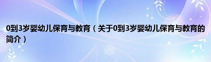 本文關于0到3歲嬰幼兒保育與教育的簡介就講解完畢,希望對大家有所幫助。