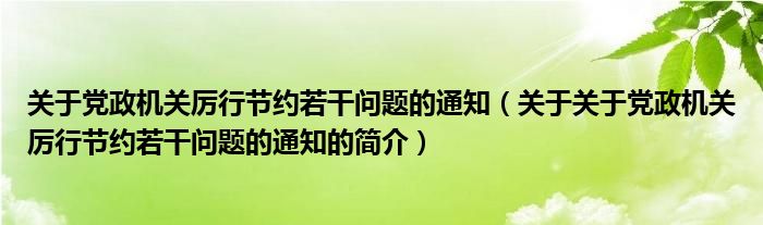本文關于關于黨政機關厲行節約若干問題的通知的簡介就講解完畢,希望對大家有所幫助。