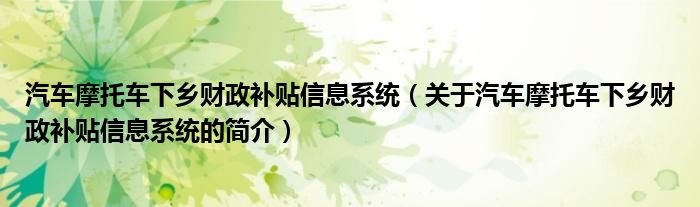 大家好,汽車(chē)摩托車(chē)下鄉(xiāng)財(cái)政補(bǔ)貼信息系統(tǒng),關(guān)于汽車(chē)摩托車(chē)下鄉(xiāng)財(cái)政補(bǔ)貼信息系統(tǒng)的簡(jiǎn)介很多人還不知道,現(xiàn)在讓我們一起來(lái)看看吧!