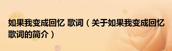 大家好,如果我變成回憶 歌詞,關于如果我變成回憶 歌詞的簡介很多人還不知道,現在讓我們一起來看看吧!