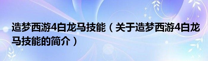 本文關(guān)于造夢西游4白龍馬技能的簡介就講解完畢,希望對大家有所幫助。