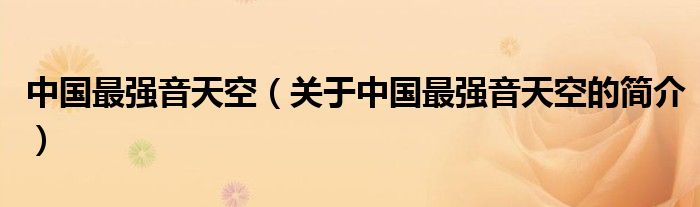 大家好,中國最強音天空,關(guān)于中國最強音天空的簡介很多人還不知道,現(xiàn)在讓我們一起來看看吧!