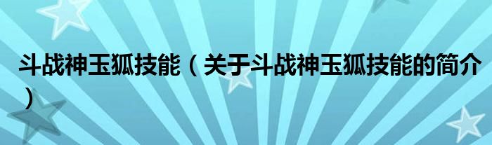 本文關(guān)于斗戰(zhàn)神玉狐技能的簡介就講解完畢,希望對大家有所幫助。